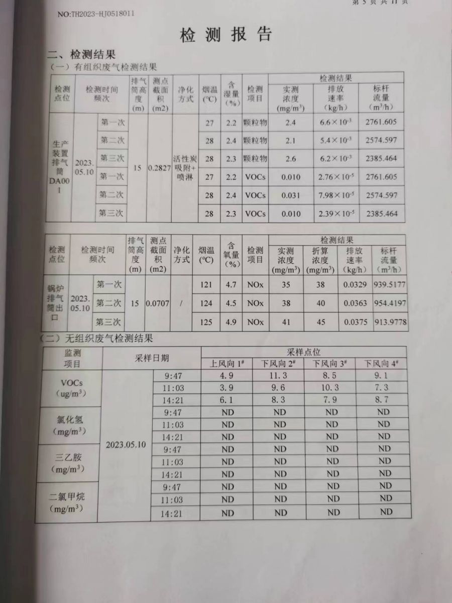 2023年度二氯甲烷廢氣檢測結(jié)果公示